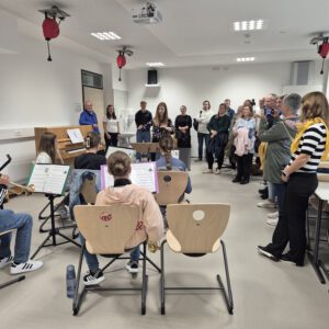 Am Montag, also knapp eine Woche nach Schulbeginn, hieß es erneut „TERVETULOA“ an der RSG. Pia Kasteneder und Paul Wagner, zwei Schüler, die letztes Jahr den Schüleraustausch mit Finnland miterleben durften, begrüßten die Abordnung von ca. 10 Personen der finnischen Partnergemeinde Jämijärvi. Nach einem kurzen Empfang drehten wir eine kleine Runde – vom Musiksaal über die Bücherei und Chemiesaal bis hin zum normalen Klassenzimmer. Beim anschließenden Plausch in der Aula zeigten sie die Gäste vor allem von der hohen Anzahl an Schülern beeindruckt – ist die Schule in Jämijärvi doch eher klein gehalten. Schon nach kurzer Zeit musste die Gruppe allerdings weiter, denn schließlich stand auch ein Mittagessen auf dem Volksfest auf dem Kulturprogramm. Wir freuen uns, wenn diese Partnerschaft weiter aufrechterhalten wird und heißen unsere finnischen Freunde jederzeit gern wieder willkommen an der Realschule.