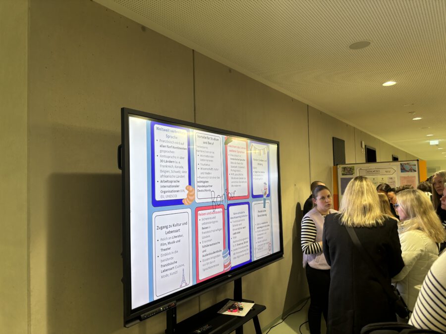 Nach den Vorträgen beantworten die Lehrkräfte noch Fragen im persönlichen Gespräch.