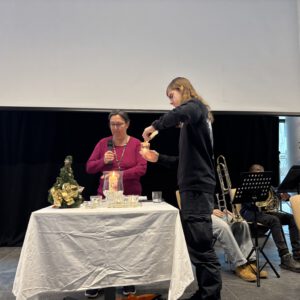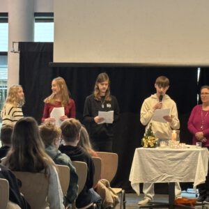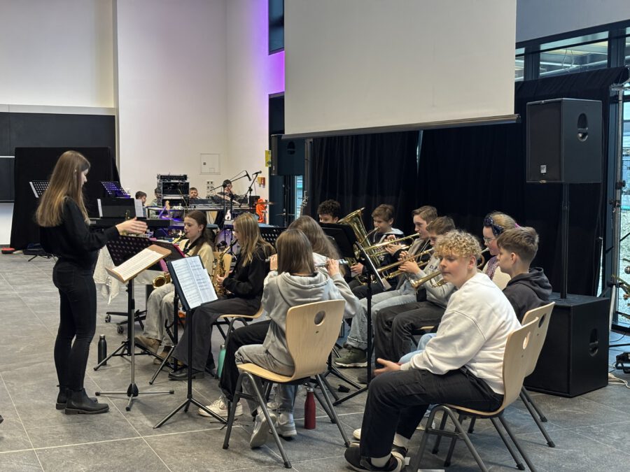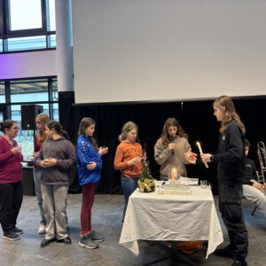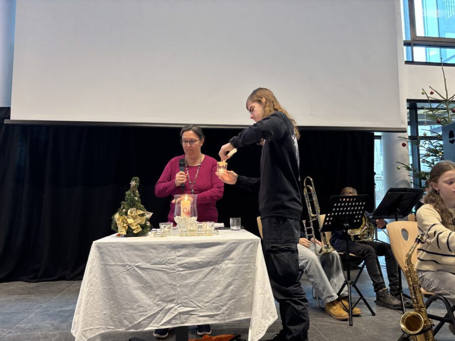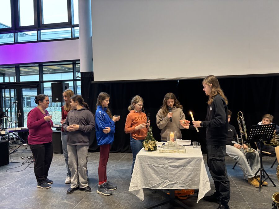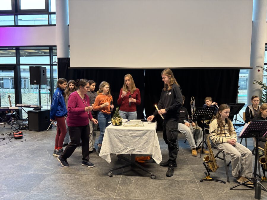 Für die musikalische Gestaltung sorgte die Big Band der Schule, die mit stimmungsvollen Weihnachtsliedern eine feierliche Atmosphäre schuf und die Weihnachtsandacht eindrucksvoll umrahmte. Die Musik trug wesentlich dazu bei, die besinnliche Stimmung in der Aula spürbar werden zu lassen.